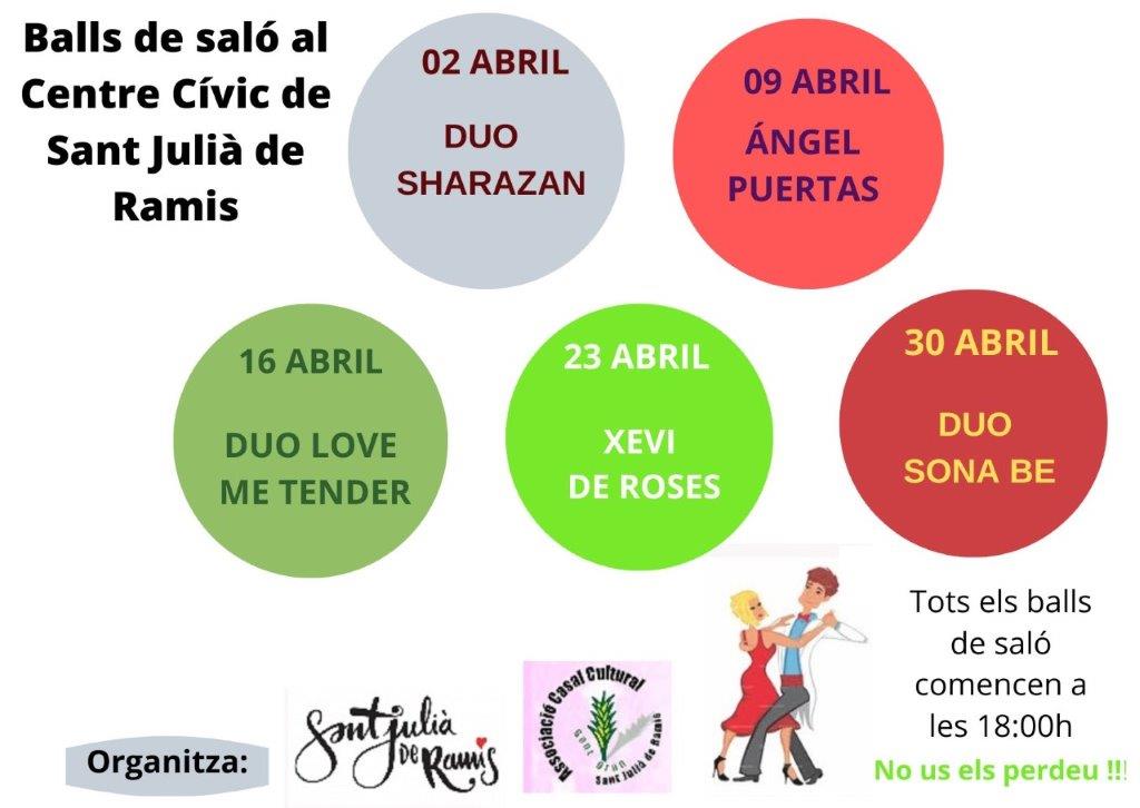 Els balls de saló del Centre Cívic de Sant Julià de Ramis és una activitat consolidada des de fa una bona colla d'anys. L'Associació del Casal cultural del Centre Cívic és l'encarregada, cada diumenge, des d'octubre fins a primers de juny de portar música per ballar, bon ambient i un lloc de trobada per a la gent del poble i rodalies.