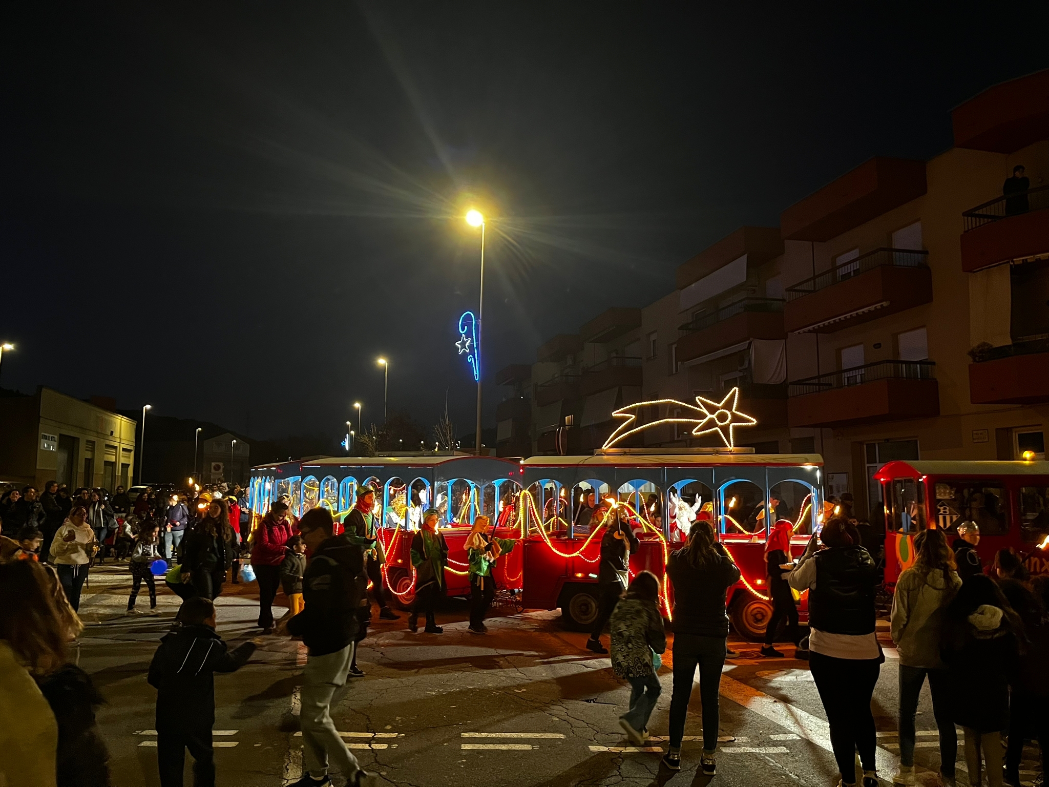 Campament reial a l'aparcament de Montagut. Inici de la Cavalcada dels Tres Reis amb el Tren Pinxo fins a la Plaça 1 d'octubre.