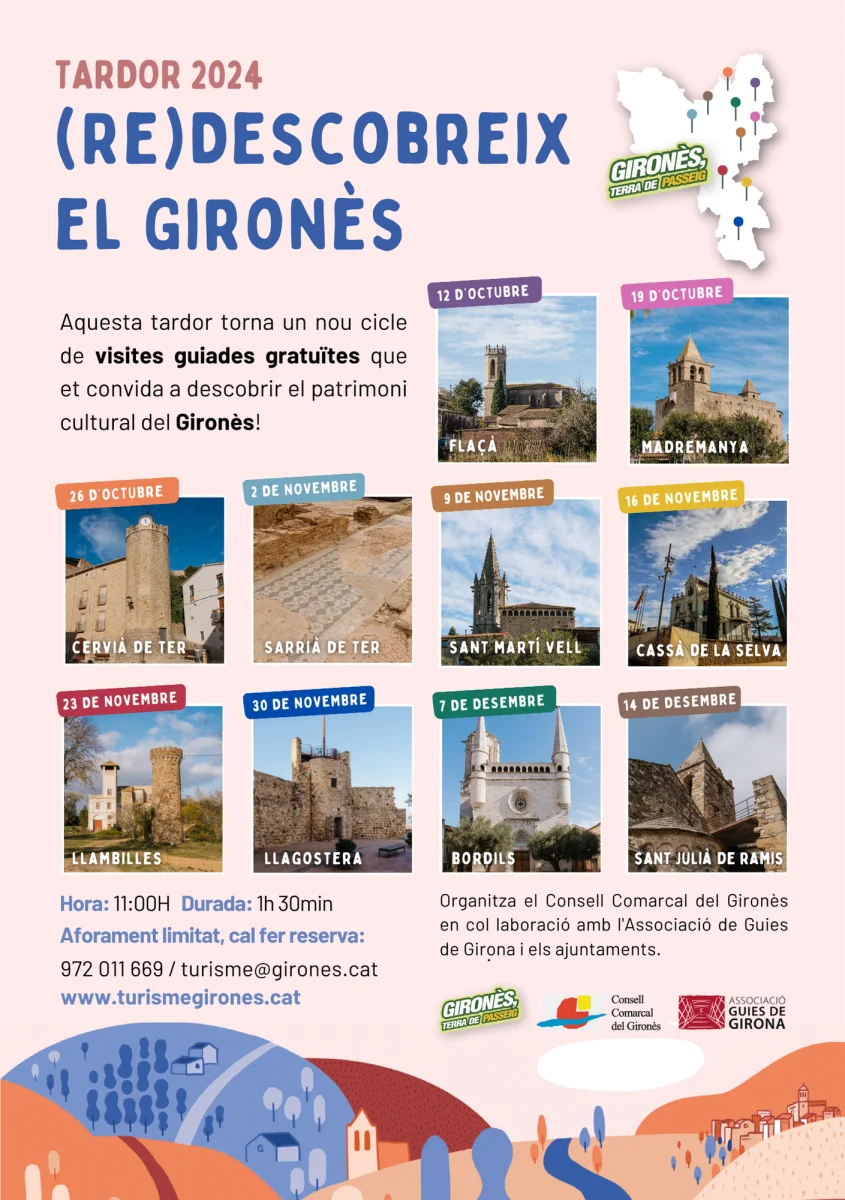 Presentem per aquesta tardor una nova programació de visites guiades culturals i gratuïtes dins el cicle “Redescobreix el Gironès” per promoure la descoberta del patrimoni cultural de la comarca. El guiatge de les visites anirà a càrrec de guies oficials de l’Associació de Guies de Girona.
