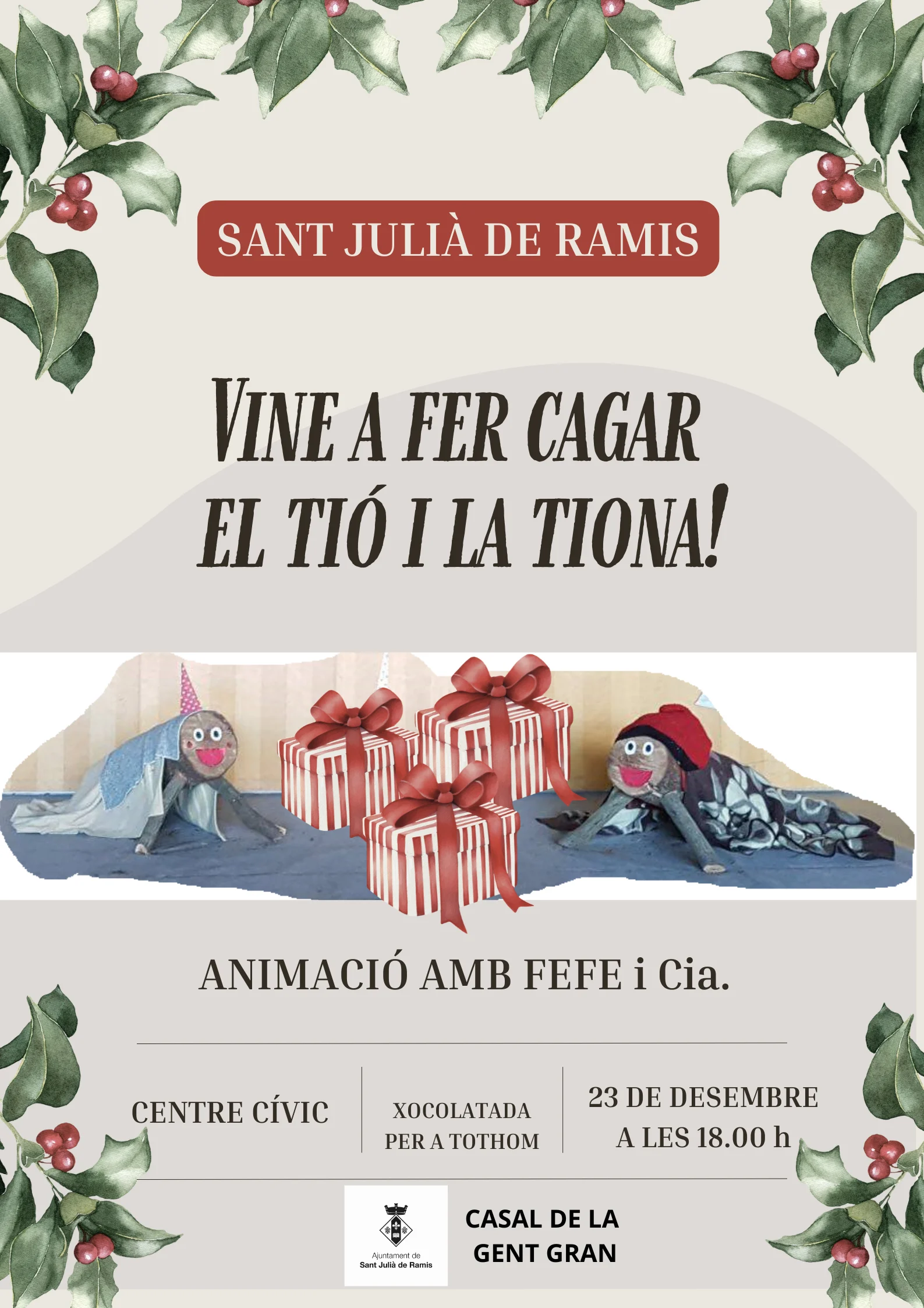 Voleu venir a fer cagar el tió i la tiona de Sant Julià? Us esperem amb moltes ganes i si canteu i piqueu ben fort, segur que us cagarà algunes cosetes.