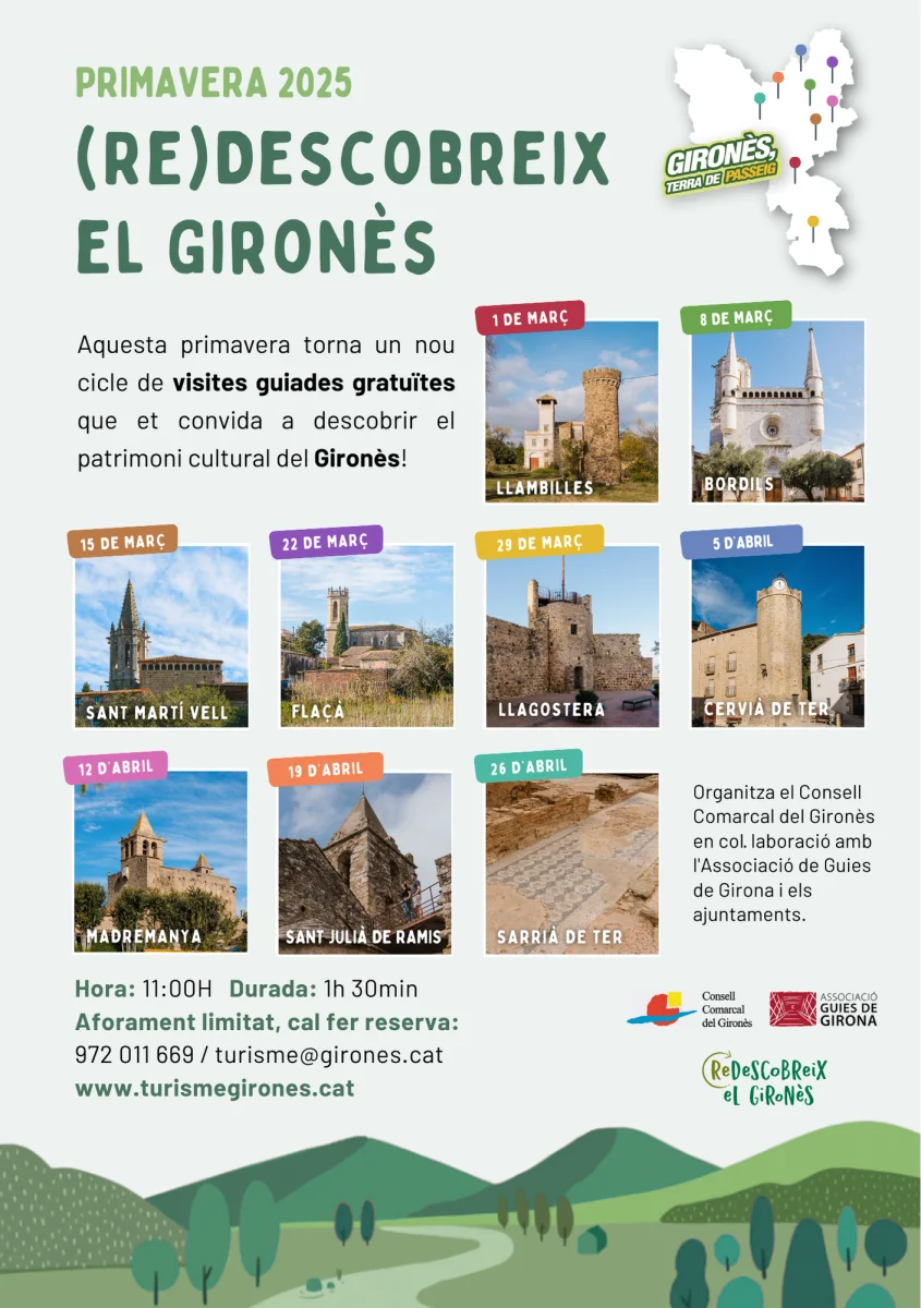 Per inscriure’s cal fer reserva al telèfon 972 011 669 o per correu a turisme@girones.cat i esperar confirmació. Les visites son gratuïtes i l’aforament és limitat.