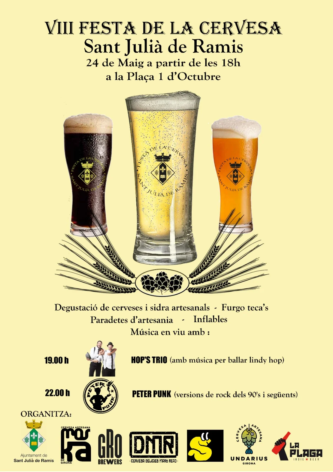 Tradicional celebració de la cervesa artesanal a Sant Julià de Ramis. A la Plaça 1 d'Octubre, tiradors de cervesa artesanal, amb l'afegit aquest any d'un tirador de sidra, paradetes d'artesania, inflables per als més petits, furgoteques per a menjars diversos i també actuacions musicals.