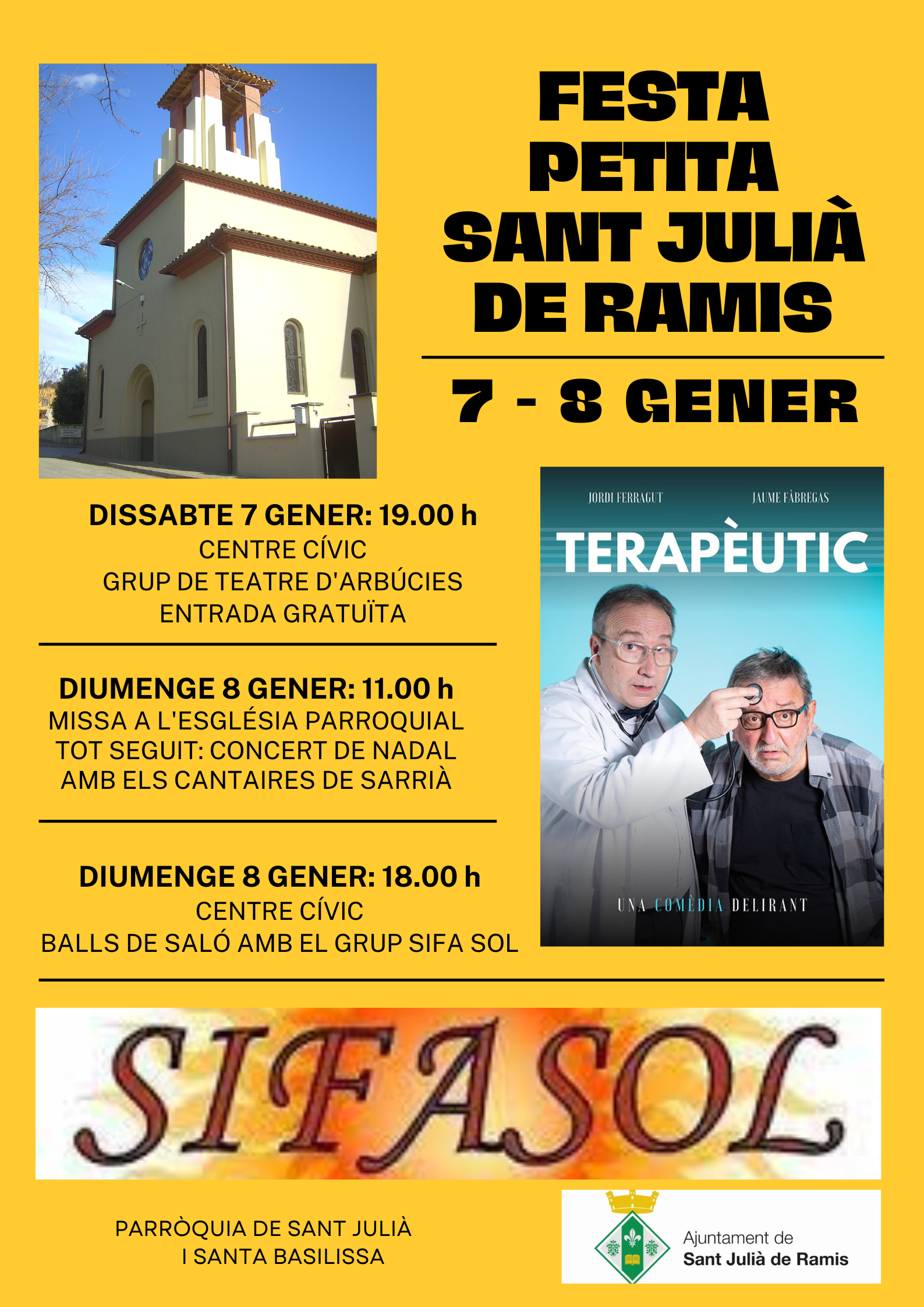 Activitats de celebració dels patrons Sant Julià i Santa Basilissa, a la parròquia i al centre cívic del poble.
