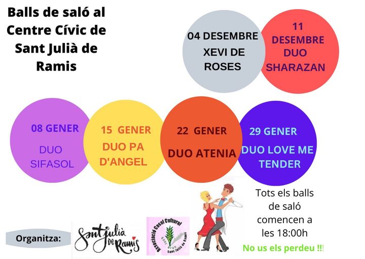 Els balls de saló del Centre Cívic de Sant Julià de Ramis és una activitat consolidada des de fa una bona colla d'anys. L'Associació del Casal cultural del Centre Cívic és l'encarregada, cada diumenge, des d'octubre fins a primers de juny de portar música per ballar, bon ambient i un lloc de trobada per a la gent del poble i rodalies.